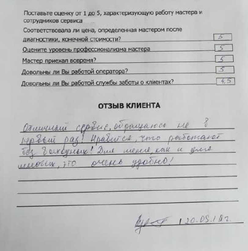 Мы уточним детали и согласуем удобное время для визита мастера